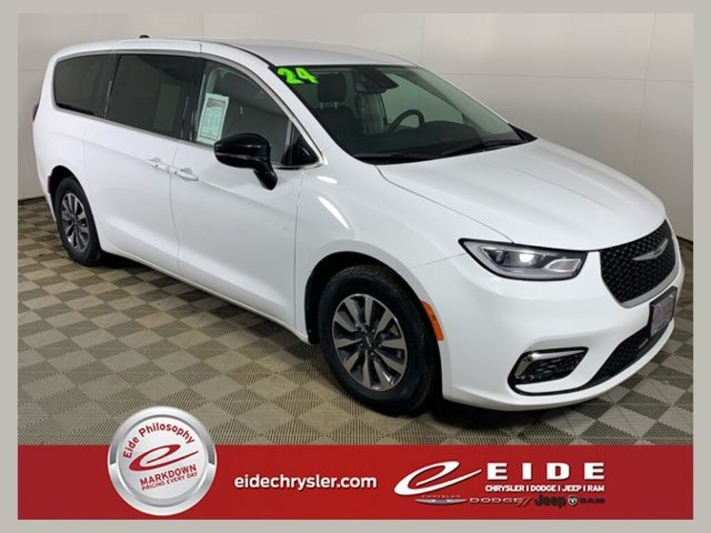 Drive smarter and travel farther in the 2024 Chrysler Pacifica Hybrid Select finished in Bright White Clearcoat. This one owner passenger van combines modern hybrid efficiency with the proven strength of a 3.6L V6 engine and smooth front wheel drive performance. Recognized by Kelley Blue Book for its innovation, comfort, and family friendly design, the Chrysler Pacifica Hybrid stands out as one of the most advanced minivans on the road today.