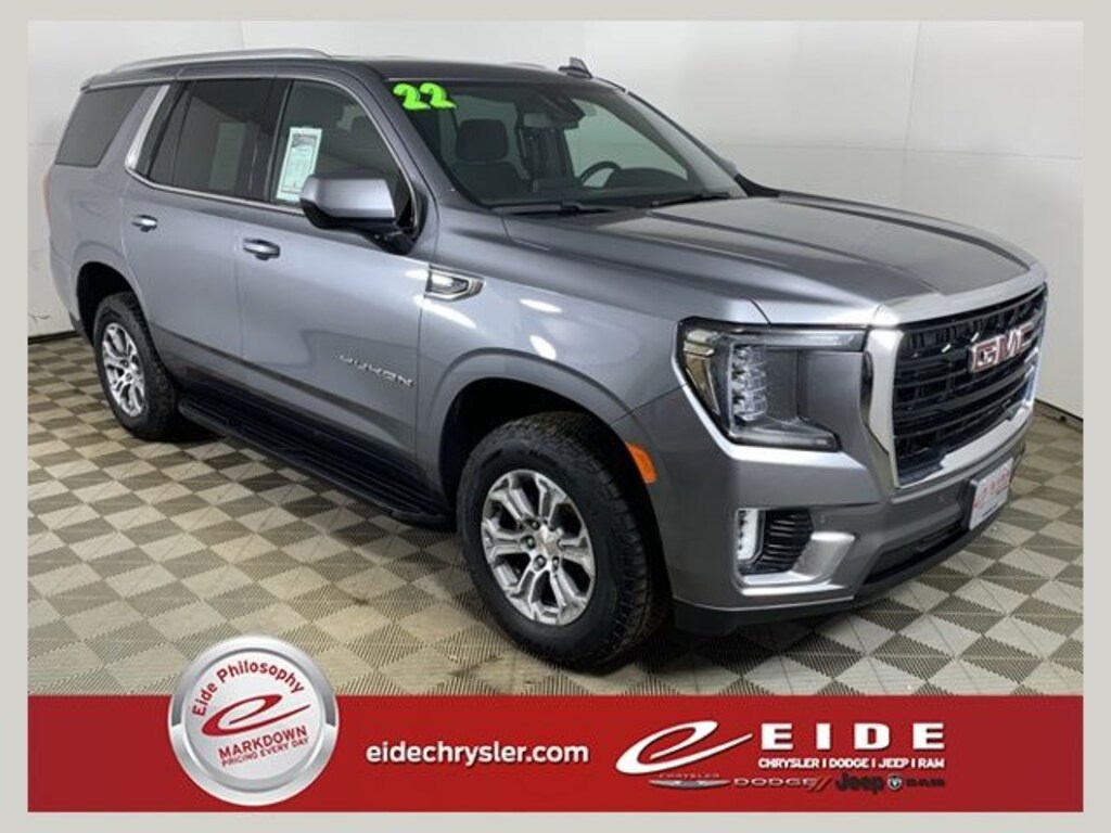 Discover bold capability and refined comfort in this 2022 GMC Yukon 4D Sport Utility SLE, finished in stunning Satin Steel Metallic. Powered by the impressive EcoTec3 5.3L V8 engine with advanced 4WD, this full size SUV delivers confident towing strength, smooth highway performance, and true all weather capability. Recognized by J.D. Power for outstanding dependability and consistently praised by Kelley Blue Book for resale value, the GMC Yukon remains a top choice among large SUVs.