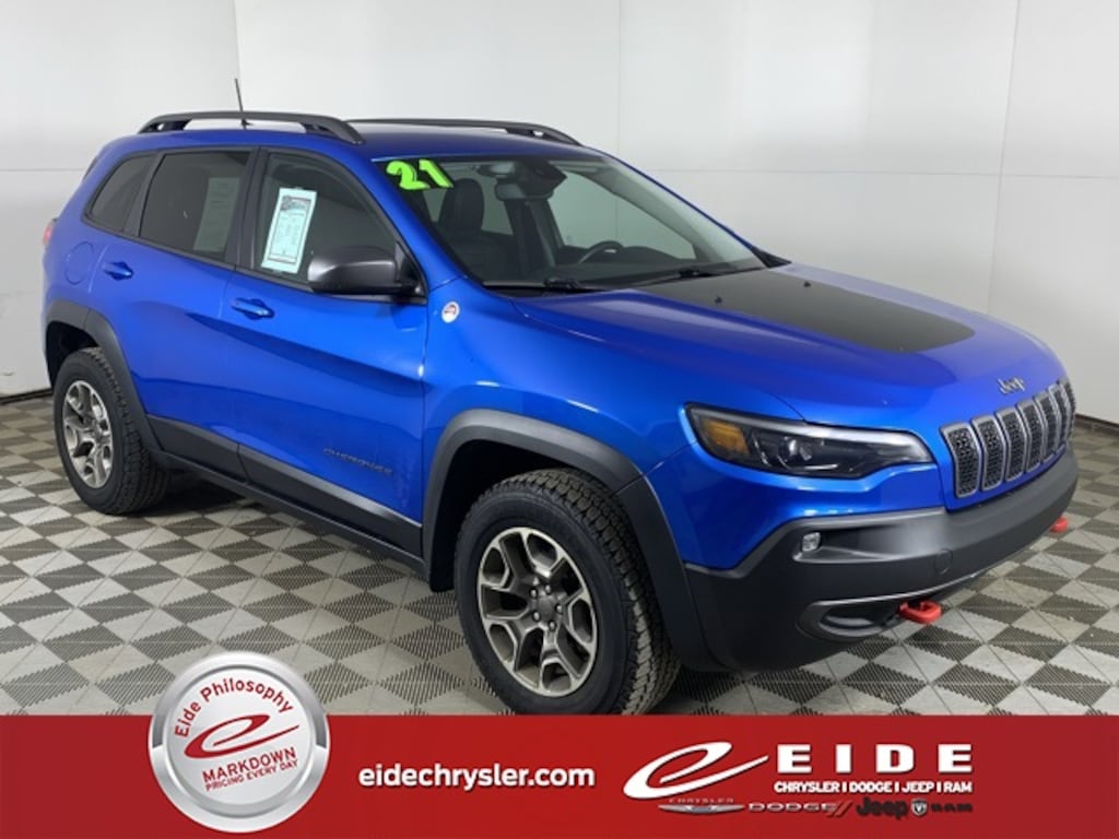 Discover adventure and refined capability in this 2021 Jeep Cherokee Trailhawk finished in striking Hydro Blue Pearlcoat. Designed for both city streets and rugged trails, this SUV combines a robust 3.2L V6 engine with 4WD, delivering confidence and control in all driving conditions. The Trailhawk trim elevates off-road readiness while maintaining premium comfort and technology for every journey.