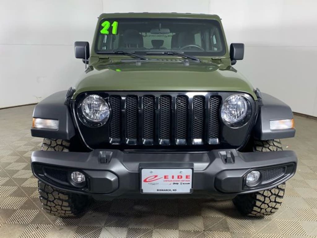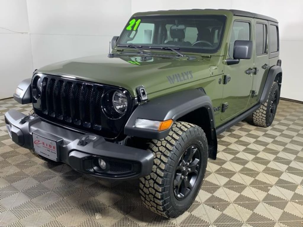 Adventure starts the moment you see this 2021 Jeep Wrangler Unlimited Willys finished in bold Sarge Green Clearcoat. Built for true off road capability, this 4D Sport Utility model is powered by a proven 3.6L V6 24V VVT engine paired with legendary 4WD performance. The iconic Jeep Wrangler Unlimited Willys honors Jeep heritage while delivering modern comfort and technology.