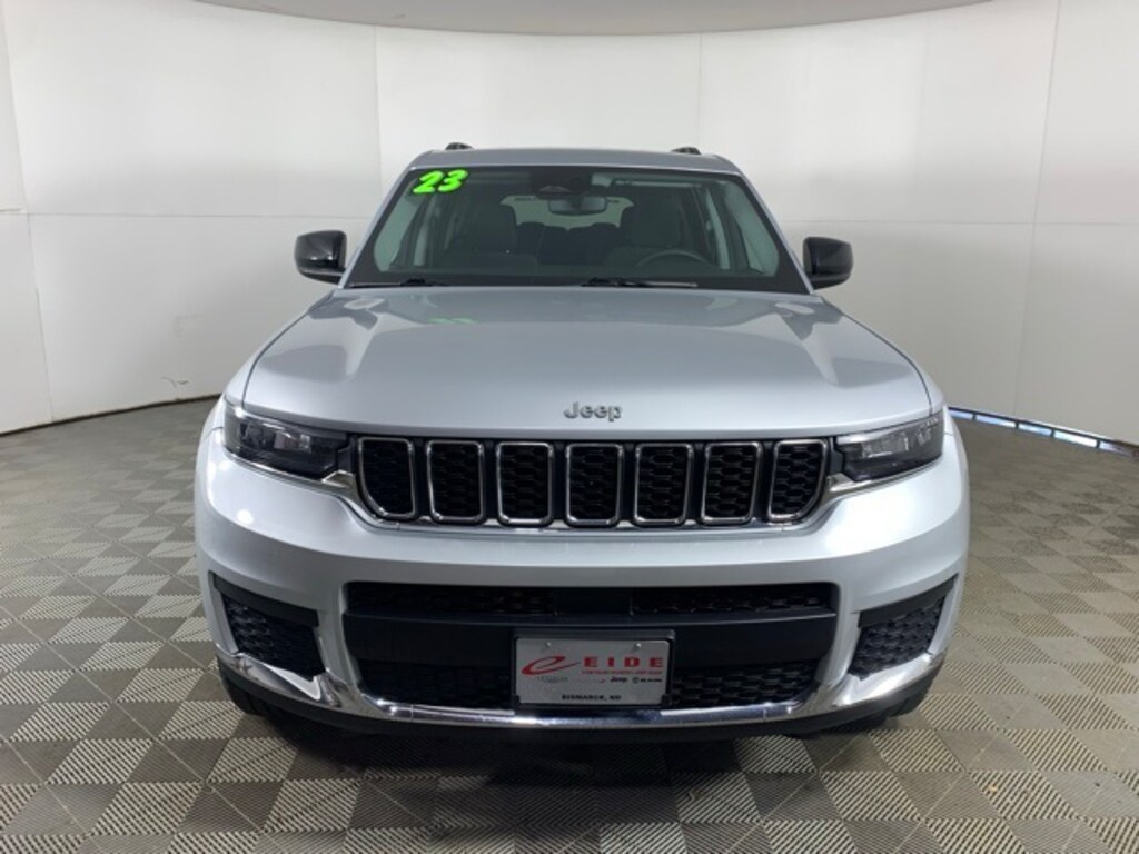 The 2023 Jeep Grand Cherokee L Laredo in Silver Zynith offers a versatile and capable full-size SUV experience, perfect for families and adventurers alike. Powered by a 3.6L V6 24V VVT engine with 4WD, it balances performance and efficiency, providing confident handling on highways, city streets, and off-road trails. Its exterior combines bold Jeep styling with practical features, including fully automatic headlights and a commanding stance that reflects both capability and refinement.