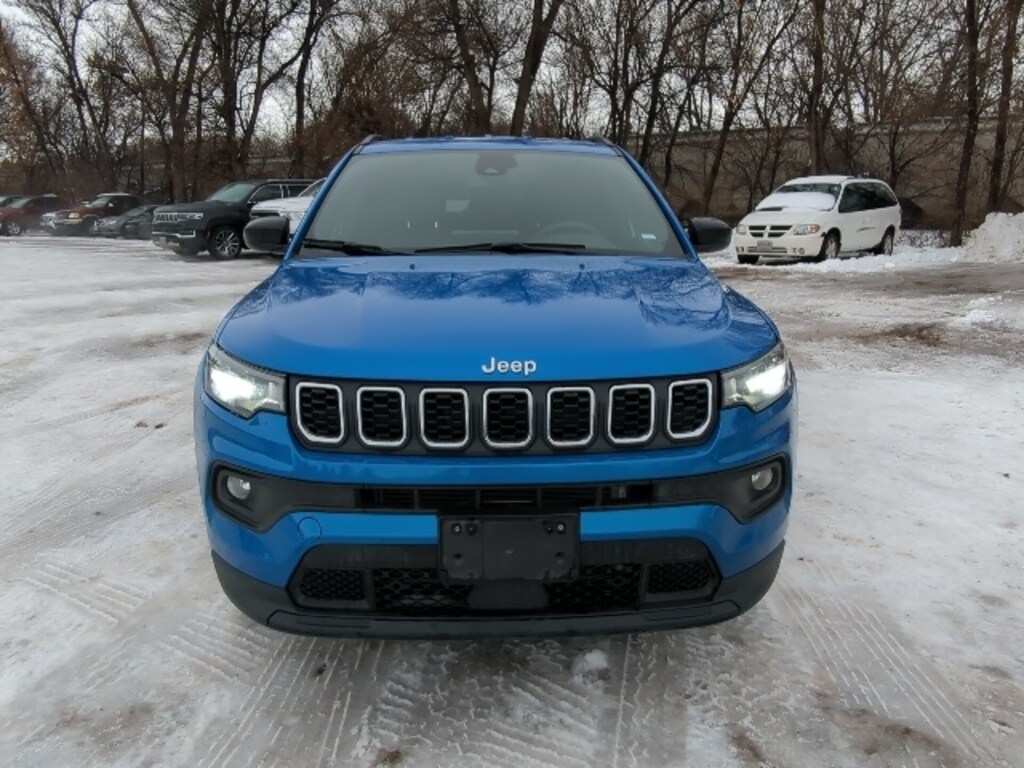 The 2024 Jeep Compass Latitude stands out instantly in its bold Hydro Blue Pearlcoat, a color that looks just as good pulling into the office as it does heading toward the nearest trailhead. With its efficient yet lively 2.0L turbo engine and confidence-boosting 4WD system, this Compass delivers the perfect balance of daily drivability and weekend capability. Snow, gravel, or rain you're covered.