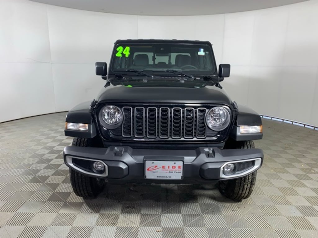 Adventure meets power in the rugged and award winning 2024 Jeep Gladiator Sport 4D Crew Cab with legendary 4WD capability and a strong 3.6L V6 engine built to conquer every terrain. Finished in bold Black Clearcoat this best in class pickup blends open air freedom with everyday comfort thanks to its black freedom three piece hard top and refined interior features. Stay warm and in control with heated front seats and a heated steering wheel while advanced technology like Uconnect 5 with Apple CarPlay and Android Auto keeps you connected on the go. The rear view camera enhances safety while the trailer tow package makes hauling gear or toys a breeze. Remote start adds extra convenience on busy mornings or cold days. Recognized for its durability and versatility the 2024 Jeep Gladiator Sport is the only open air pickup in its class making it the perfect combination of utility and adventure ready design. Visit our dealership today to experience this award winning vehicle and see why Jeep continues to set the standard for off road excellence.