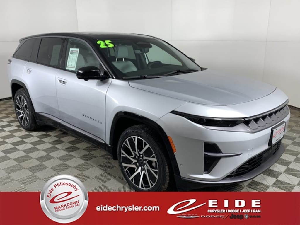 Experience the future of luxury driving in the 2025 Jeep Wagoneer S Limited, a fully electric SUV designed to deliver power, refinement, and efficiency in every mile. Finished in Silver Zynith Clearcoat with the Dark Appearance Package and Two Tone Paint Group, this Wagoneer S stands out with modern, confident style. The electric motor and 4WD system produce instant torque for smooth acceleration, effortless merging, and quiet, vibration free cruising. Enjoy the freedom of an all electric drive with fewer stops, responsive handling, and a serene cabin environment that is perfect for both city streets and weekend escapes.