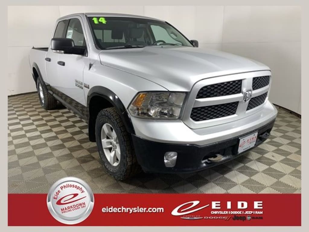 This 2014 Ram 1500 Outdoorsman 4D Quad Cab 4WD is a rugged and capable full-size truck powered by the legendary 5.7L HEMI V8 with Multi-Displacement VVT, delivering strong towing performance, dependable power, and proven long-term durability. Finished in Bright Silver Metallic Clearcoat, this Outdoorsman model is built for drivers who need a capable work-ready truck with added comfort and off-road versatility.
