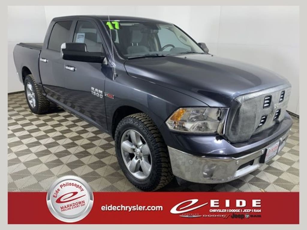 Discover rugged capability and refined comfort in this 2017 Ram 1500 Big Horn Crew Cab EcoDiesel finished in striking Maximum Steel Metallic Clearcoat. Powered by the legendary 3.0L V6 EcoDiesel engine with 4WD and an electric shift on demand transfer case, this full size pickup delivers impressive towing power and outstanding fuel efficiency. As part of the award winning Ram 1500 lineup, named MotorTrend Truck of the Year multiple times, this truck blends strength, technology, and everyday practicality.