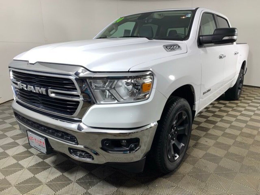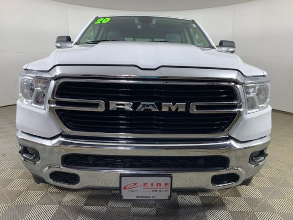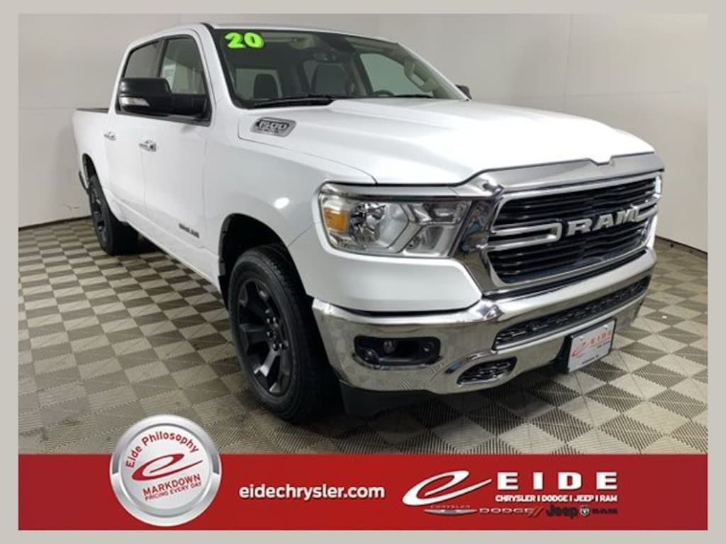 Discover bold performance and modern comfort with this 2020 Ram 1500 Crew Cab Big Horn finished in Bright White Clearcoat. Powered by the legendary HEMI 5.7L V8 with Multi Displacement VVT and four wheel drive, this truck delivers impressive horsepower, torque, and efficiency for both work and play. This well maintained local trade in offers confidence and value for your next truck purchase.