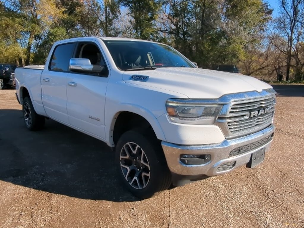 Experience premium power and refinement in this 2021 Ram 1500 Laramie finished in Bright White Clearcoat. This one owner, Accident Free Auto Check, Local Trade-In truck is equipped with the legendary HEMI 5.7L V8 Multi Displacement VVT engine and 4WD, delivering confident performance, smooth acceleration, and impressive capability on every road.
