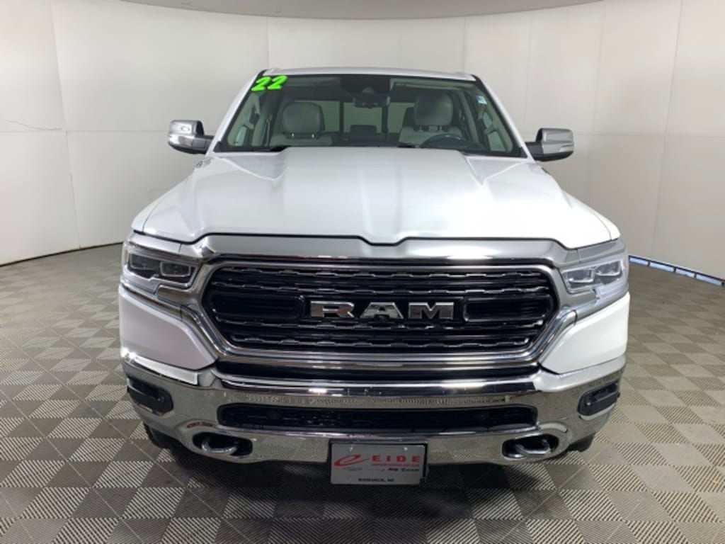 Experience power luxury and cutting edge technology with this 2022 Ram 1500 Limited 4WD finished in stunning Ivory White Tri Coat Pearlcoat. Equipped with a legendary HEMI 5.7L V8 engine, this 4D Crew Cab delivers impressive performance with smooth handling and rugged durability. Enjoy the comfort of heated and cooled front seats, heated second row seats, and a heated steering wheel making every ride first class. Stay connected with Apple CarPlay and Android Auto, and get where you need to go with built in navigation. Safety and convenience come standard with features like a 360 degree camera, lane keep assist, park assist, reverse sensing system, and remote start. Enjoy rich sound from the premium Harman Kardon audio system and be winter ready with an engine block heater. Recognized as a best in class full size pickup for luxury and performance the 2022 Ram 1500 Limited continues to win awards for its interior design technology and capability. Visit us today to test drive this award winning truck and elevate your driving experience.