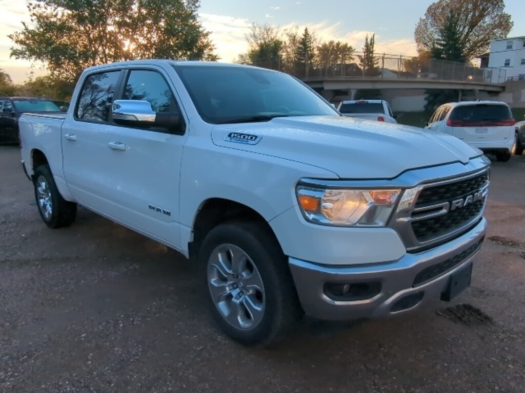 Take on every job or weekend adventure with confidence in the 2022 Ram 1500 Big Horn Crew Cab now available in bold Bright White Clearcoat. This awardwinning full size pickup is packed with capability comfort and modern tech making it one of the best in class trucks on the market. Under the hood you will find a powerful and efficient 36L V6 engine with eTorque technology paired with 4WD to handle tough terrain or rough weather with ease. The spacious 4D Crew Cab offers plenty of room for family friends or gear while premium features like Remote Start and a crystal clear Rear View Camera make every drive easier and more convenient. The 2022 Ram 1500 continues to earn praise for its smooth ride exceptional towing and hauling capabilities and innovative design inside and out. Whether you are heading to the job site or planning your next road trip the Ram 1500 Big Horn delivers the perfect blend of strength style and smart technology. Visit our dealership today and experience why this truck is a leader in its class.