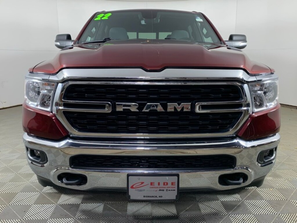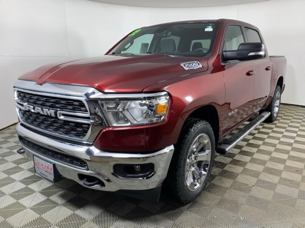 Stand out in style and strength with the 2022 Ram 1500 Big Horn Lone Star Crew Cab finished in bold Delmonico Red Pearlcoat. This rugged yet refined pickup is powered by a 3.6 liter V6 24 valve VVT engine and backed by Four Wheel Drive for confident performance on any road or job site. With best in class ride quality and multiple awards for capability and interior design, the Ram 1500 continues to set the standard in the full size truck segment. Stay connected and entertained with Apple CarPlay and Android Auto, while built in navigation GPS keeps you on course. Keyless access with pushbutton start makes every drive easier, and the rear view backup camera adds extra peace of mind when parking or towing. Whether you are hauling gear, commuting, or heading out on a weekend adventure, this Ram delivers comfort, power, and technology in one standout package. Call now to schedule your test drive and see why the Ram 1500 is an award winning leader in its class.