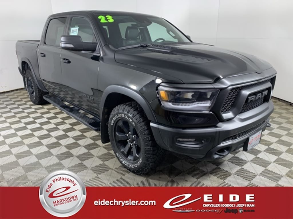 Experience power comfort and cutting-edge technology with this 2023 Ram 1500 Rebel in Diamond Black Crystal Pearlcoat. With a HEMI 5.7L V8 Multi Displacement VVT eTorque engine and 4WD, it delivers commanding performance on highways back roads or off-road trails. This Accident Free Auto Check vehicle offers both confidence and capability in one bold package.