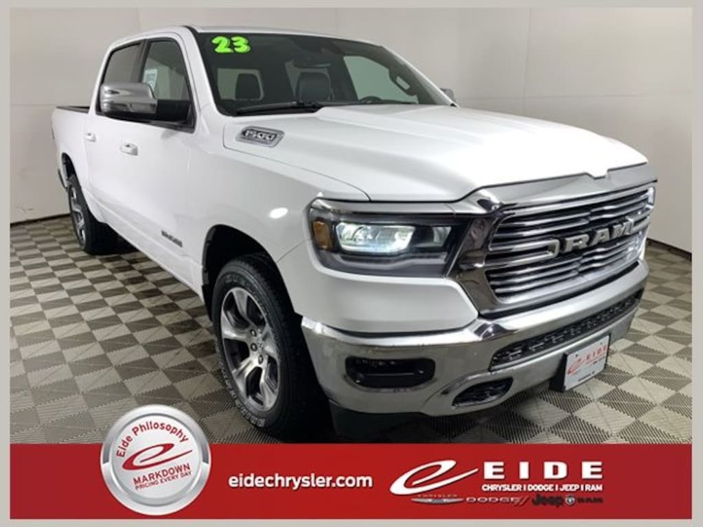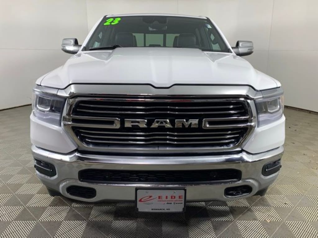 The 2023 Ram 1500 Laramie turns every drive into a perfect balance of power, comfort, and confidence. Finished in Bright White Clearcoat and powered by the legendary 5.7L HEMI V8 with eTorque, this full-size pickup is built to tow, haul, and cruise with ease. The HEMI delivers commanding strength, while eTorque technology adds smooth acceleration and refined efficiency for city driving and long highway runs alike.
