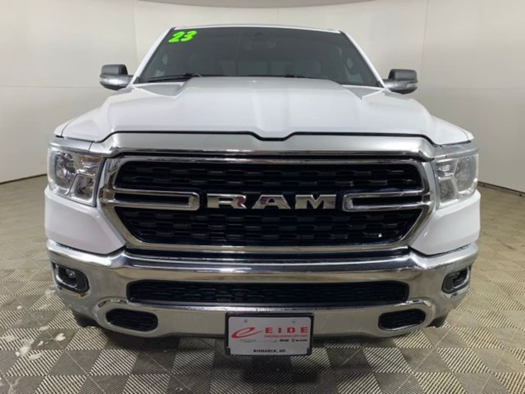 2023 Ram 1500 4D Crew Cab Big Horn HEMI 5.7L V8 Multi Displacement VVT eTorque 4WD Bright White Clearcoat Heated Front Seats***, Heated Steering Wheel***, Rear View Camera/Backup Camera***, Trailer Tow Package***, Apple Carplay/Android Auto***, Bluetooth Handsfree Phone***, SirusXM Satellite Radio***, Remote Start***, 1500 Big Horn, HEMI 5.7L V8 Multi Displacement VVT eTorque, 4WD, Diesel Gray/Black w/Cloth Bench Seat or Deluxe Cloth Bucket Seats, 8.4" Touchscreen Display, Big Horn Level 1 Equipment Group, Illuminated entry, ParkView Rear Back-Up Camera, Radio: Uconnect 5 W w/8.4" Display, Remote keyless entry.